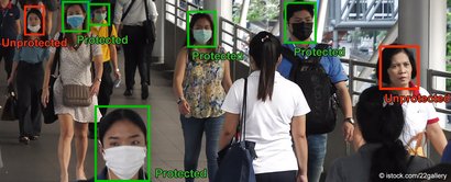The automated face mask detection verifies compliance with such precautions and can - when connected to an access control system - allow or block entry to a building. Suitable for any facility with public access.