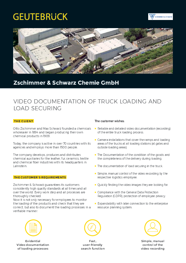 Zschimmer & Schwarz Chemie GmbH VIDEO DOCUMENTATION OF TRUCK LOADING AND LOAD SECURING The customer wishes: THE CLIENT Otto Zschimmer and Max Schwarz founded a chemicals wholesaler in 1894 and began…