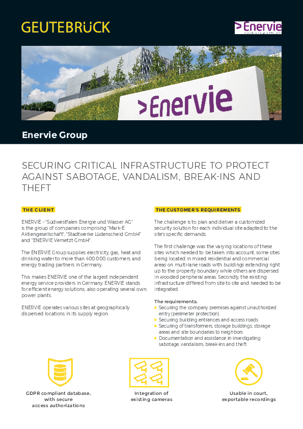 Enervie Group SECURING CRITICAL INFRASTRUCTURE TO PROTECT AGAINST SABOTAGE, VANDALISM, BREAK-INS AND THEFT THE CLIENT THE CUSTOMER‘S REQUIREMENTS ENERVIE - “Südwestfalen Energie und Wasser AG“ is…