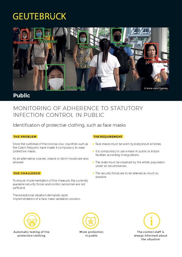 Public MONITORING OF ADHERENCE TO STATUTORY INFECTION CONTROL IN PUBLIC Identification of protective clothing, such as face masks THE PROBLEM THE REQUIREMENT Since the outbreak of the corona virus,…