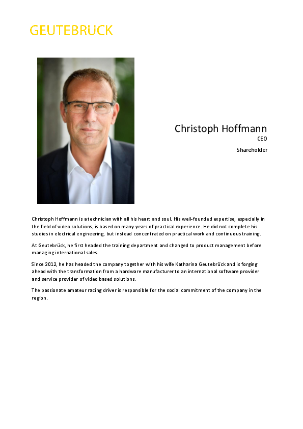 Christoph Hoffmann CEO Shareholder Christoph Hoffmann is a technician with all his heart and soul. His well-founded expertise, especially in the field of video solutions, is based on many years of…