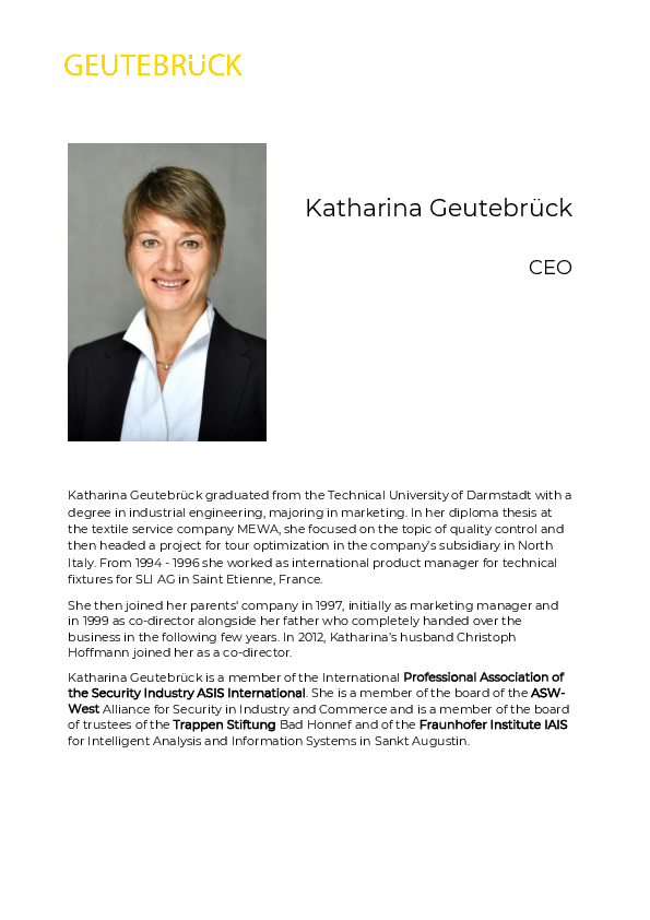Katharina Geutebrück CEO Katharina Geutebrück graduated from the Technical University of Darmstadt with a degree in industrial engineering, majoring in marketing. In her diploma thesis at the…