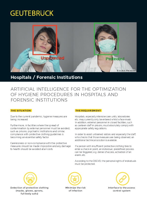 Hospitals / Forensic Institutions ARTIFICIAL INTELLIGENCE FOR THE OPTIMIZATION OF HYGIENE PROCEDURES IN HOSPITALS AND FORENSIC INSTITUTIONS THE SITUATION THE REQUIREMENT Due to the current…
