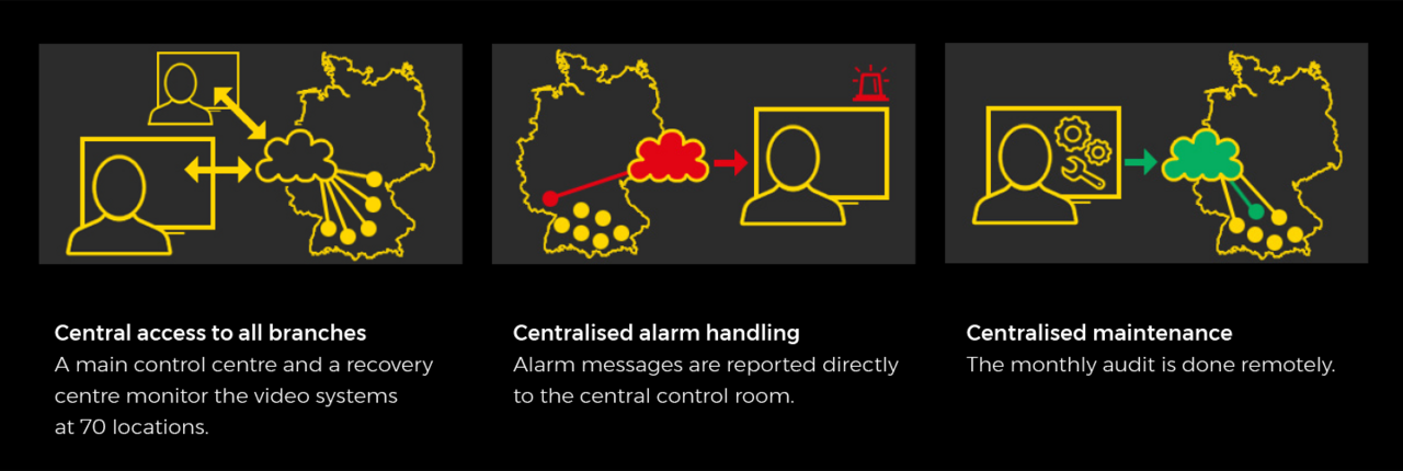 The centralised surveillance of images from all branch offices will take place at the head office - with the option to transfer the back-up surveillance to another branch.